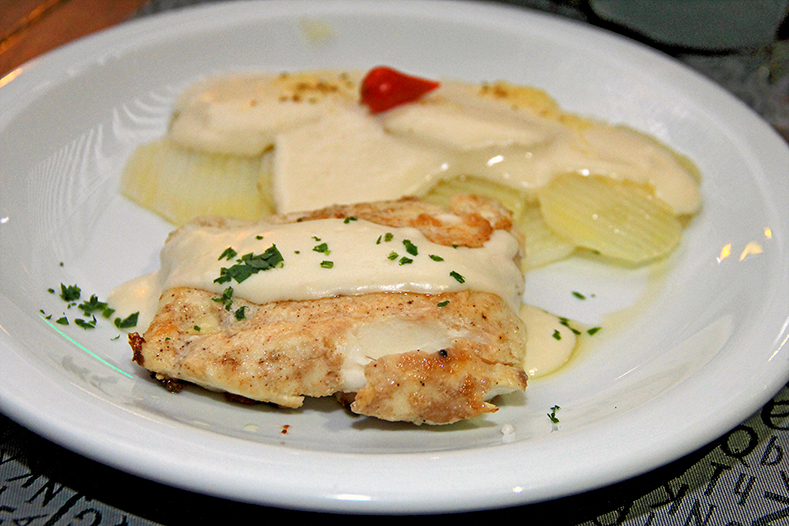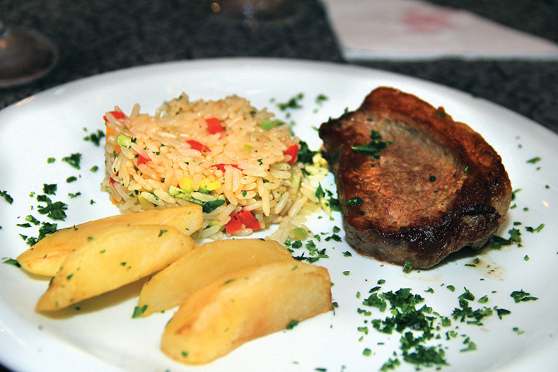 Uma sequência com seis pratos, incluindo um “mimo de boas-vindas”, foi servida aos participantes do jantar. A primeira parte do jantar teve uma lâmina de frios e um ceviche, que antecederam o prato principal: o cliente escolhia entre um filé de bicuda ao sauce verte e uma picanha argentina com batata gratinada e arroz primavera.