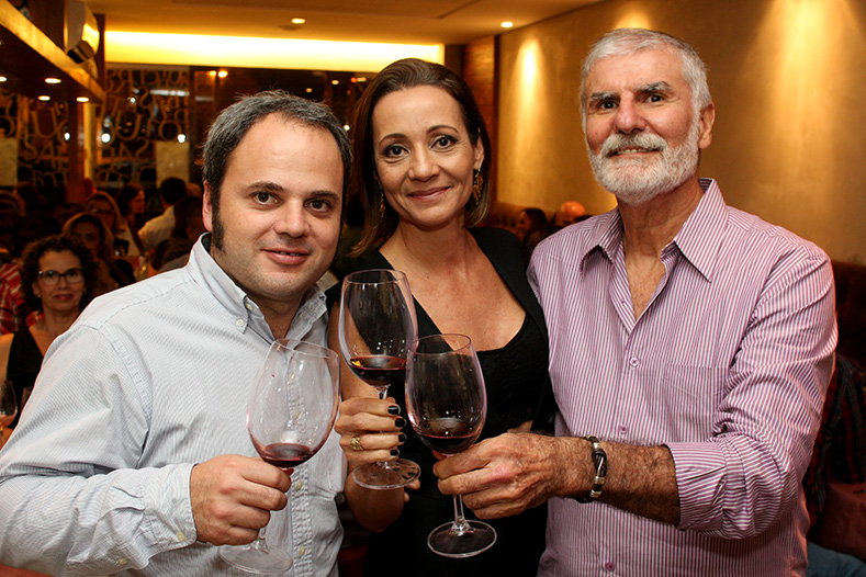 | Juan Pablo Lecaros, enólogo da vinícola Viu Manent, e o casal Marcelo e Verônica Chianca, da Magazzino |