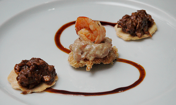 Caviar de caju e caju metido a besta (com camarão) foram as entradas