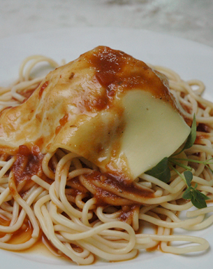 Porpetone com spaghetti Queijo coalho recheado com doce