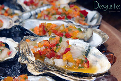 | Estrelas da noite, as ostras forem servidas de diversas maneiras pelo chef Jaime Barcelos |