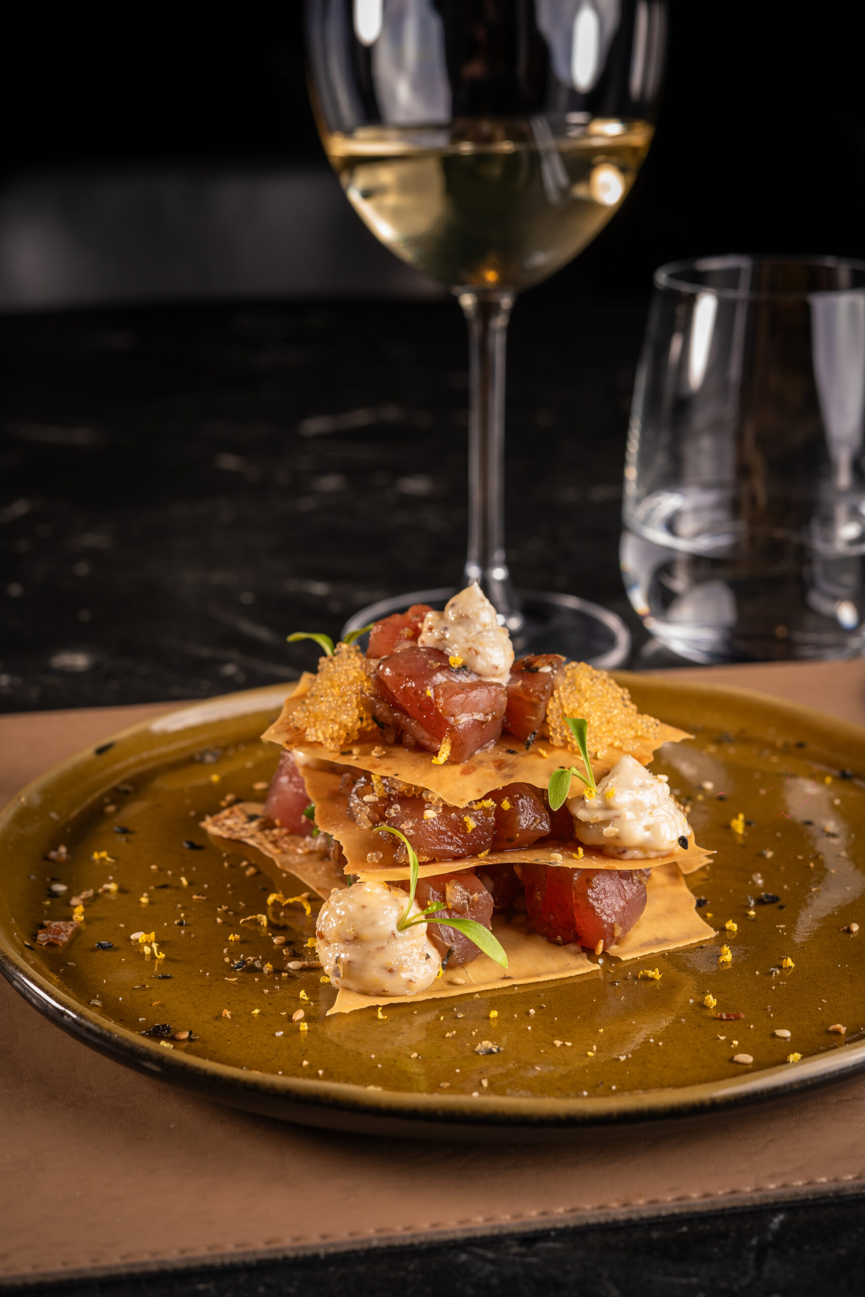 O menu começa com a entrada Mil folhas de atum com creme azedo e cítricos, sendo harmonizada com o elegante Felino Chardonnay. Em seguida, uma segunda entrada de Flatiron Steak com molho de cogumelos e farofa de bacon será acompanhada pelo vinho Felino Alfa Malbec.