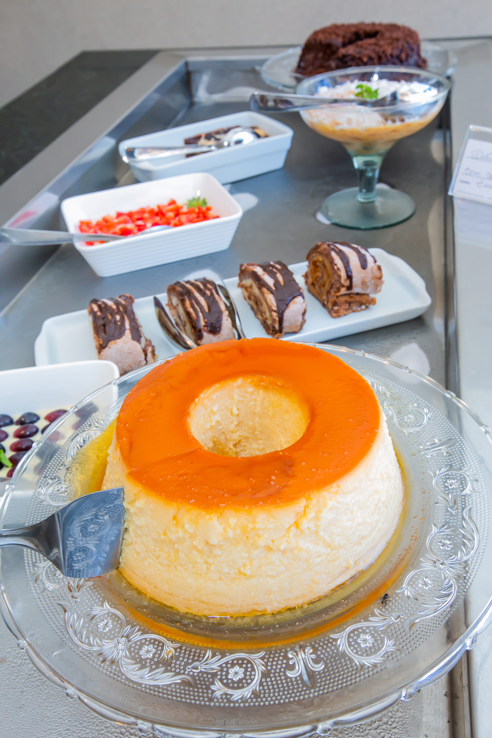De sobremesa, há delícia de abacaxi, pavê de sonho de valsa, pudim e o rocambole de chocolate com doce de leite, muito apreciado pelos clientes. Existem ainda opções zero lactose e zero açúcar.