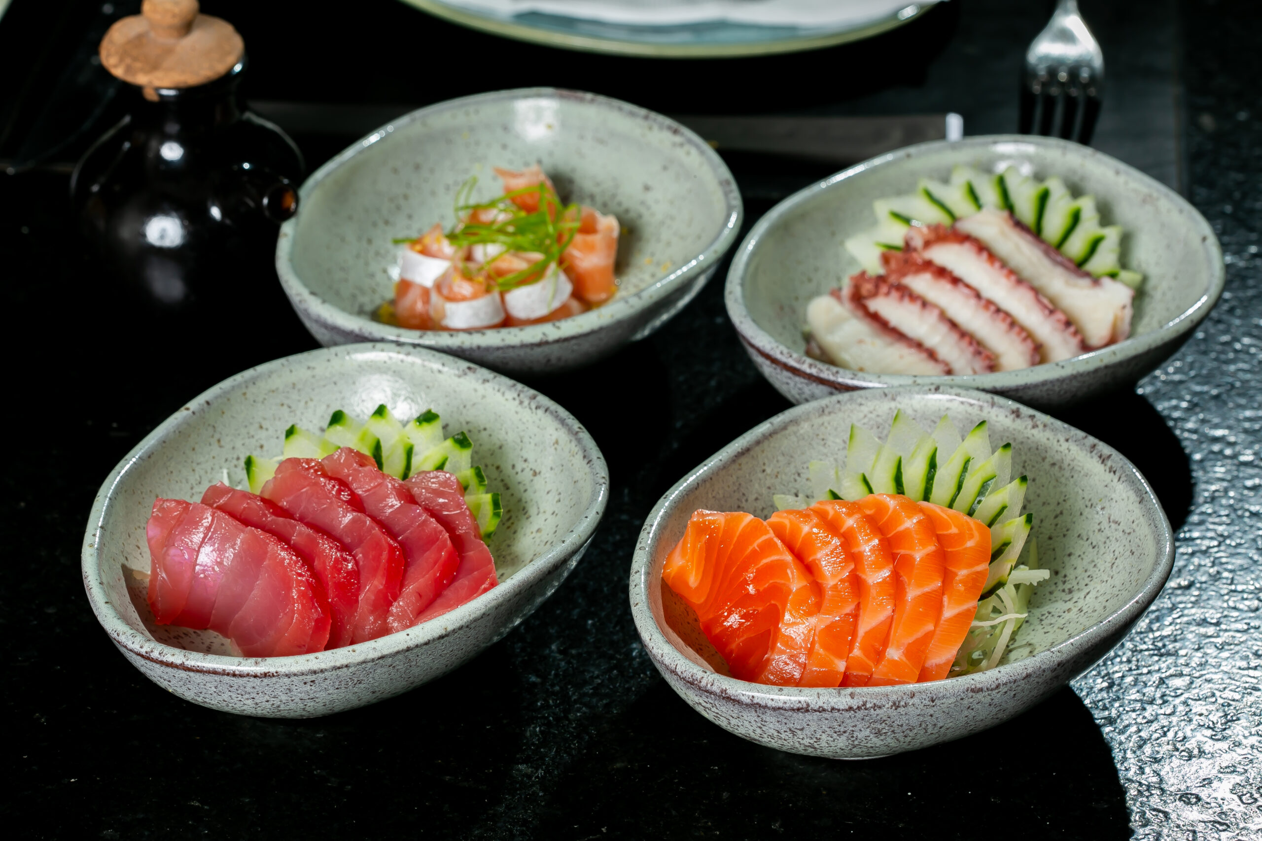 Entre as opções, estão carpaccios (salmão, peixe branco, polvo ou atum), robatas (espetinhos japoneses servidos à vontade, com versões de salmão, camarão, polvo, peixe, carne e queijo), sushis, makis especiais, temakis, uramakis, niguiri, hossomakis, além de pratos quentes e sobremesas.