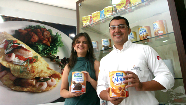 | Os representantes da Nestlé: a trade marketing Aline Mendes e Sérgio Pereira |