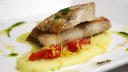 | “Badejo au Beurre Noisette et Pommes au Jus”, badejo com molho de musseline de batata |