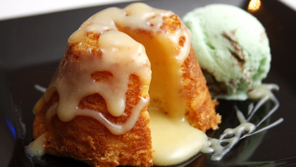 | “Petit Gateau à la Papaia e Menthe”, bolinho quente de chocolate branco e cream cheese |