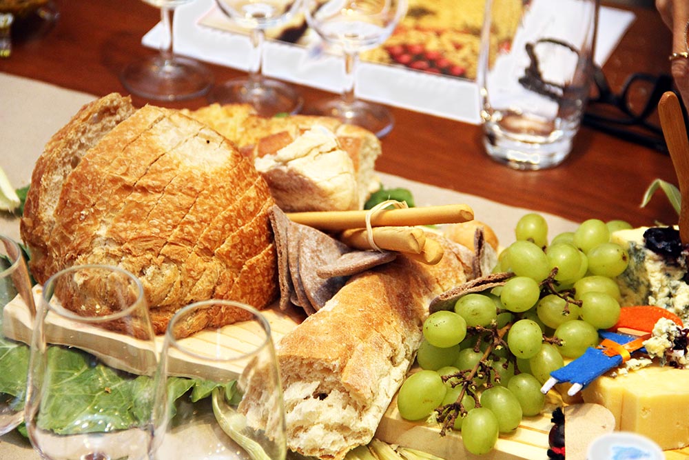 Os vinhos são harmonizados com um bufê de pães, frios e antepastos oferecido pela Platter For You.