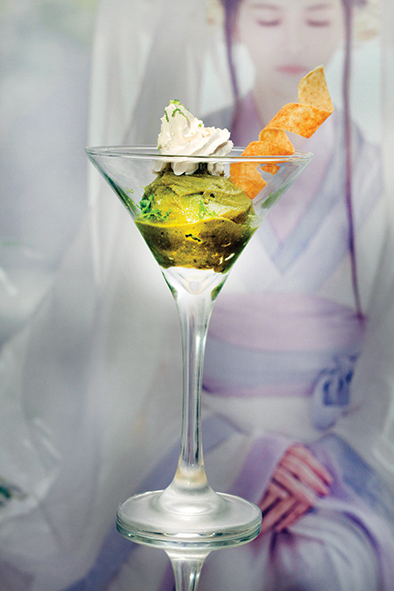 | Um dos bonitos ambientes do Japa em Casa e a sobremesa Nuvem de Capim Santo | |