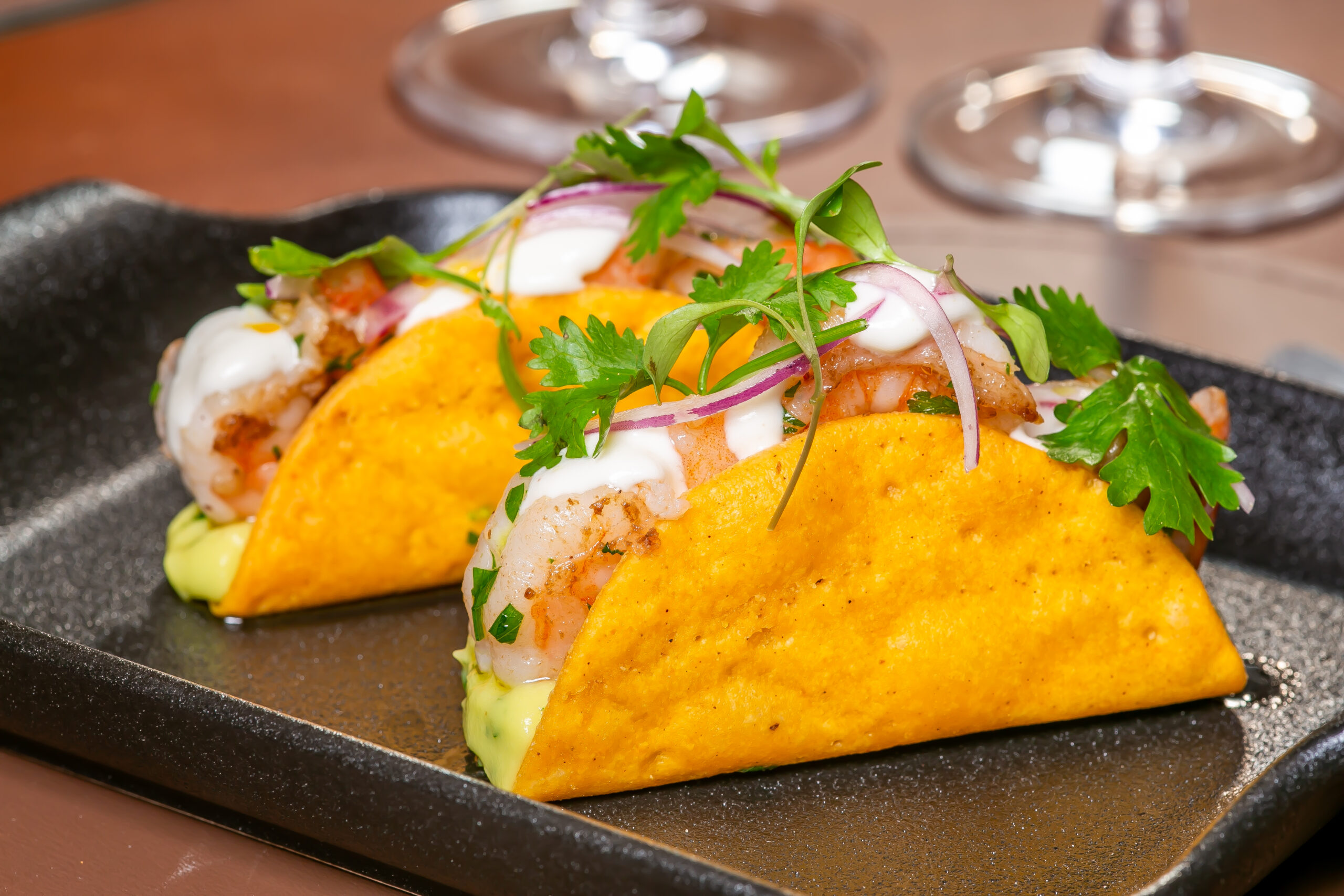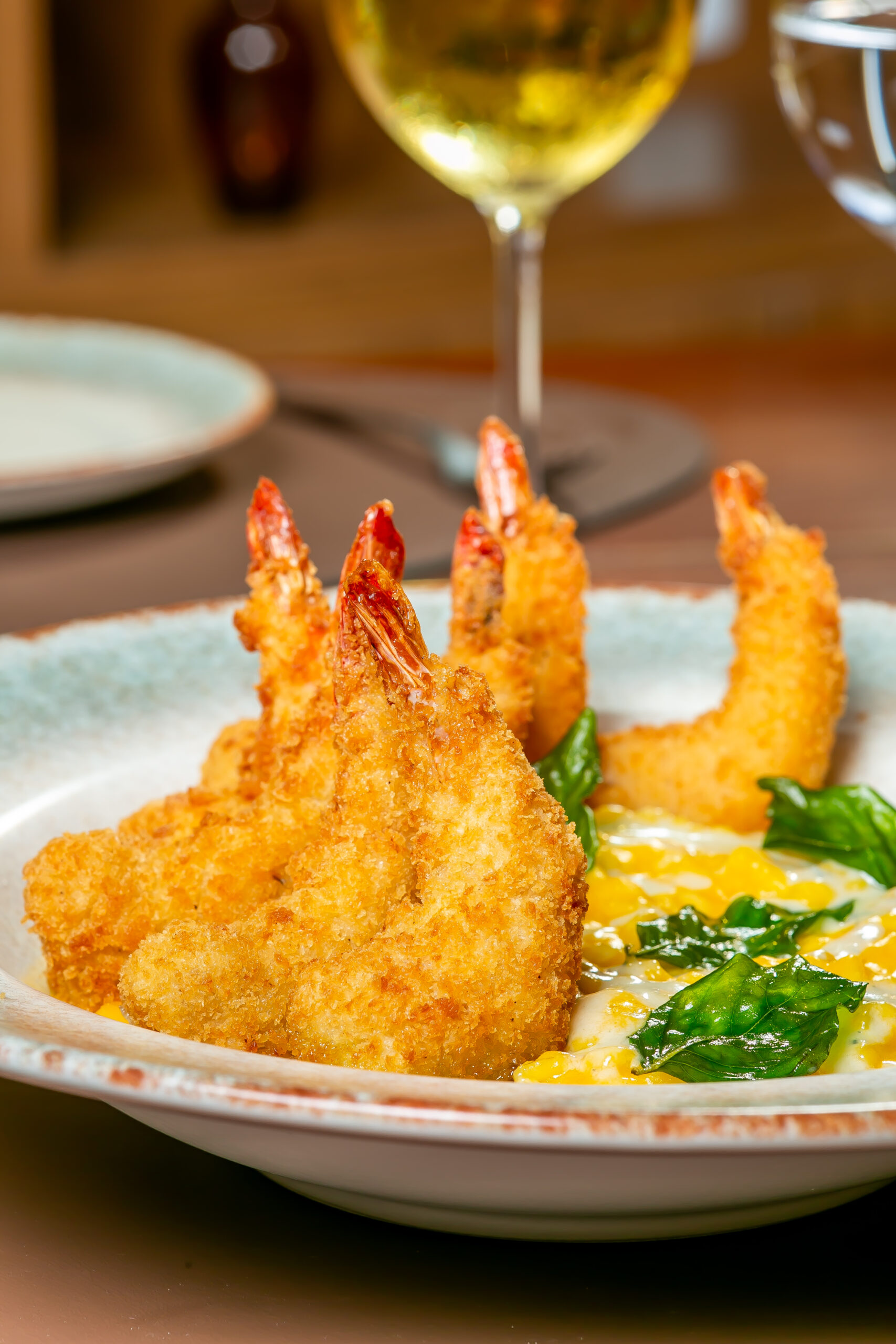 O cardápio reafirma esse conceito ao reunir cerca de 15 opções de entradas, com destaque para o taco de camarão e a tradicional coxinha Oli, além de releituras como a bruschetta Rogéria e o clássico vatapá, servido com camarões empanados.