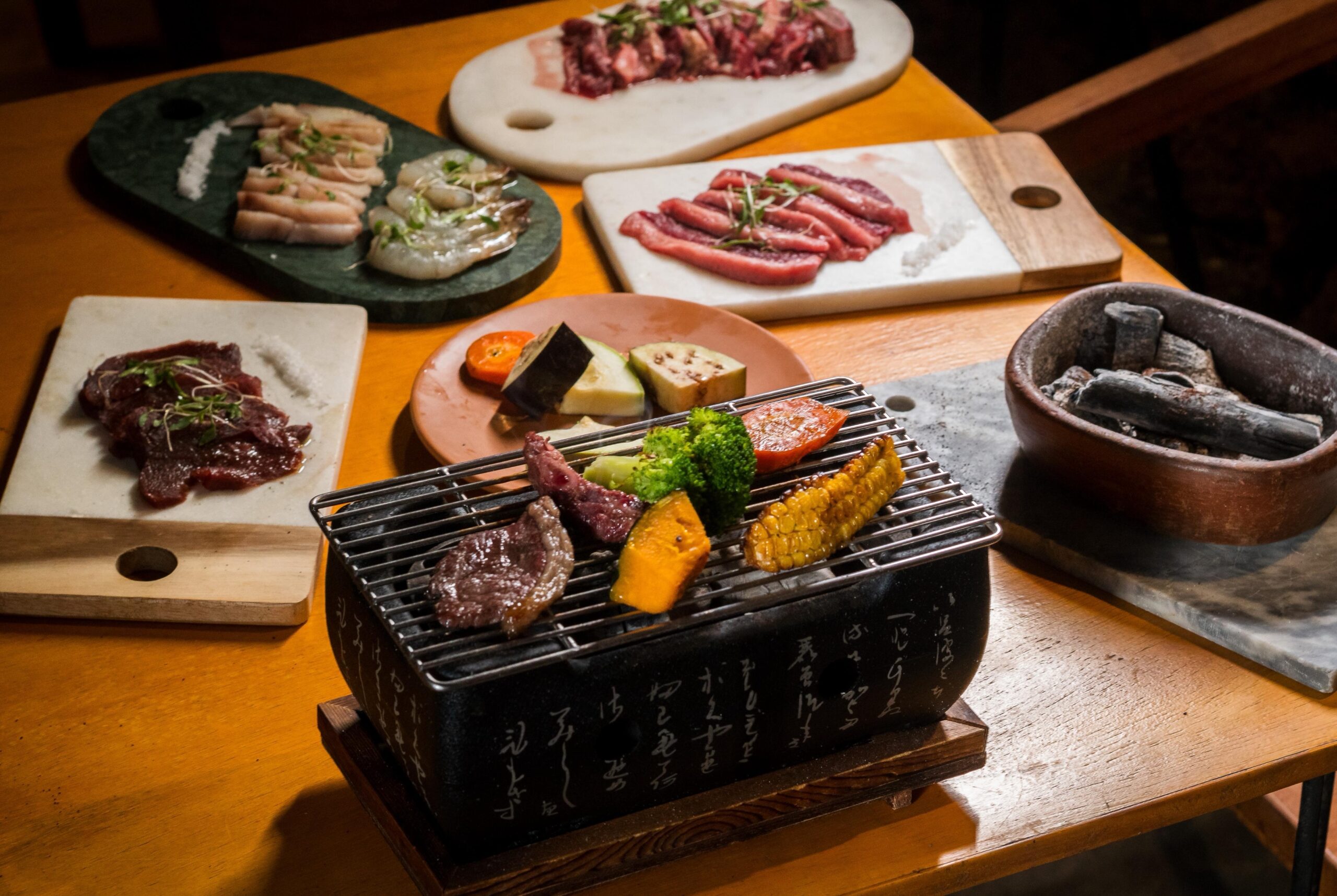 A novidade consiste em uma churrasqueira individual levada até a mesa, inspirada no conceito dos churrascos orientais. Nela, o cliente escolhe as proteínas e os acompanhamentos disponíveis no cardápio e prepara os ingredientes no próprio ritmo, definindo o ponto ideal de cada vegetal, carne ou pescado. A ideia é transformar a refeição em um momento mais intimista e envolvente, valorizando aromas, texturas e o contato direto com o fogo.