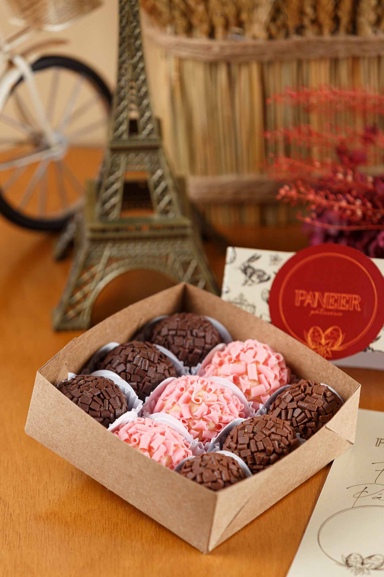 Outros produtos bem disputados são as caixinhas para presente. Há opções de vários tamanhos e com os mais diversos itens, como caixinhas de brigadeiro com quatro ou nove unidades sortidas. Porém o cardápio também é aberto para que os clientes montem seus próprios kits, reunindo delícias como brioches, ovos de chocolate, bolo, croissants, dentre outros produtos. Todas as embalagens são personalizadas com o tema de páscoa Natal-Paris.