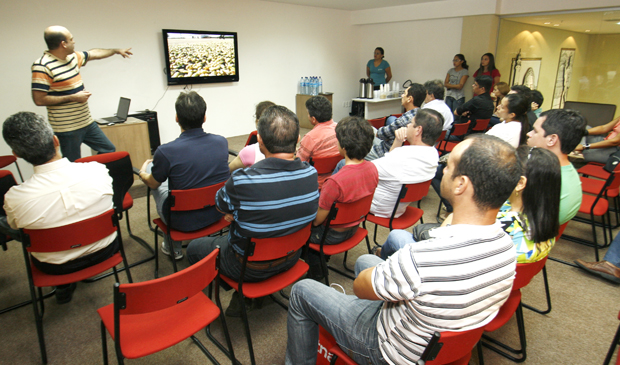 Paulo iniciou com uma animação em vídeo que contou a história do café desde sua origem, na Etiópia, até chegar ao Brasil. Usando slide show e alguns vídeos, o palestrante abordou todas as etapas do plantio, colheita, seleção de grãos, classificação até a preparação para se obter uma bebida de alta qualidade.