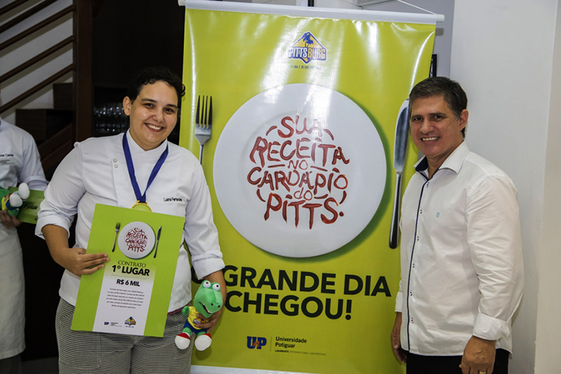 Luana Fernandes é a vencedora do concurso "Sua receita no cardápio do Pitts". A candidata, que atualmente faz pós-graduação em Cozinha Regional Brasileira, foi eleita na manhã dessa quarta-feira (19) no evento realizado na UNP da Roberto Freire. Além do reconhecimento pelo seu trabalho, com o primeiro lugar Luana leva para casa um contrato de três meses de trabalho no Pittsburg, além de ter sua receita assinada no novo cardápio executivo da rede. Para ela, a experiência foi muito importante. "Eu fiquei muito feliz. Tinha uma torcida dos colegas do curso, eles me incentivaram. Acho que é uma questão de experiência. É a experiência que a gente precisa para entrar no mercado de trabalho e é uma oportunidade muito boa de estar entrando dessa forma".