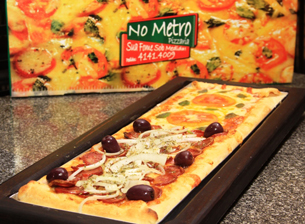 A No Metro Pizzaria é uma marca nova, iniciada em Parnamirim pelos sócios Estevani Oliveira e Danilo César, que apostam na novidade do modelo de apresentação da pizza para rapidamente expandir o mercado. A primeira loja foi inaugurada em maio, no Shopping Cohabinal, e em julho eles já abriram a segunda unidade, na avenida Prudente de Morais, em Candelária, para atrair o público de Natal.