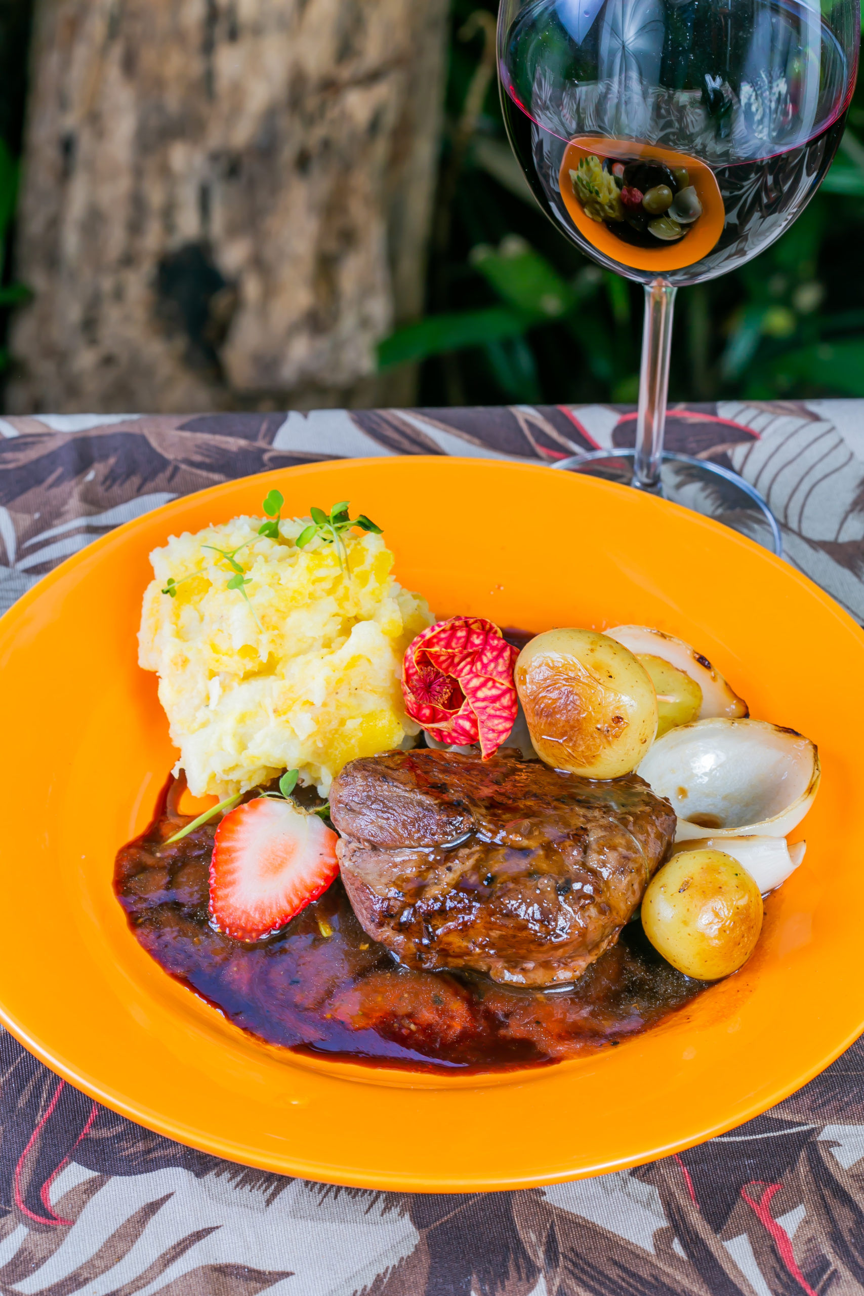 Dos pratos principais, o medalhão de filé e o bacalhau (finalizado no forno à lenha) são dois grandes conhecidos dos clientes. As opções do cardápio se estendem por Magret com redução de laranja, Picanha de cordeiro regada com mel de engenho, Lagosta com manteiga de alcaparras, posta de Salmão com chutney de abacaxi, Vieiras com manteiga e limão siciliano, dentre outros.