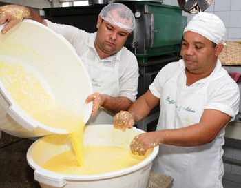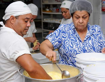 O processo de produção é todo feito artesanalmente. O milho é moído uma hora antes de ir para a panela e passado em peneiras de carnaúba, o que preserva o sabor original da canjica, é o que garante a empresária. As bacias e as colheres são em polietileno, tudo para não alterar o sabor do produto.