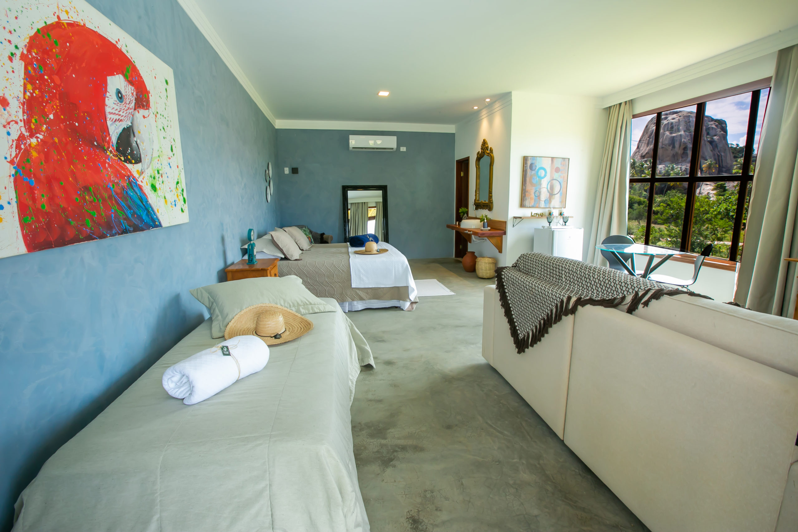 São 11 acomodações que levam nomes de pássaros como Anumará, Azulão, Galo de Campina e Araruna, Asa Branca e Lavadeira, das quais quatro suítes, dois chalés “Premium” e dois chalés “Master”. As suítes são classificadas em duplas, triplas ou quádruplas, enquanto os chalés Lavadeira e Araruna comportam até três pessoas. A capacidade total é de até 28 hóspedes, embora hoje reduzida em menos 10 pessoas. Crianças são aceitas a partir dos oito anos de idade.
