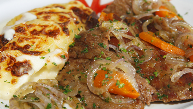 Pernil com batata doce gratinada é um dos pratos regionais que fazem parte do cardápio da Noite Nordestina