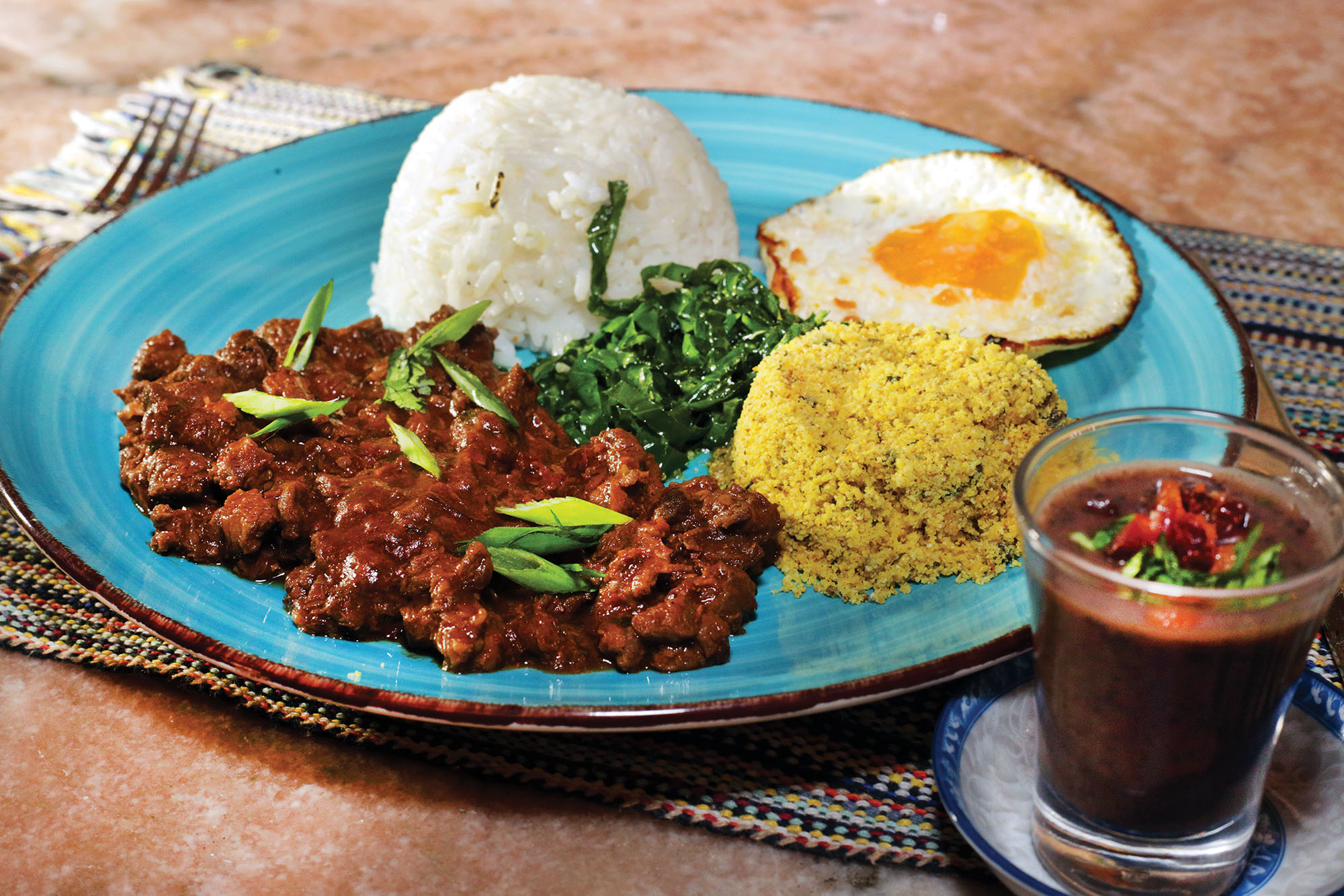 O almoço tem sete opções: medalhão de filé, estrogonofe, picadinho, sassami de frango com molho de castanha e ameixas, filé de peixe grelhado, espaguete e carne de sol com natas. O cardápio também inclui três opções de saladas, crême brûlée, petit gateau de chocolate, torta de maçã e pudim de tapioca com baba de cupuaçu de sobremesa.