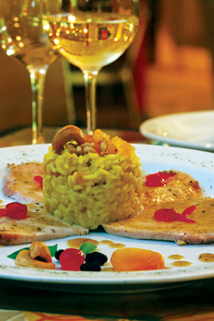 Risoto – Refogue o arroz no alho, na cebola e no azeite e em seguida acrescente o vinho. Espere reduzir e depois vá acrescentando o caldo aos poucos. Por fim, coloque o açafrão.