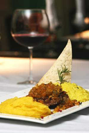 Cama de Tachino com Risotto de Brie e Damasco