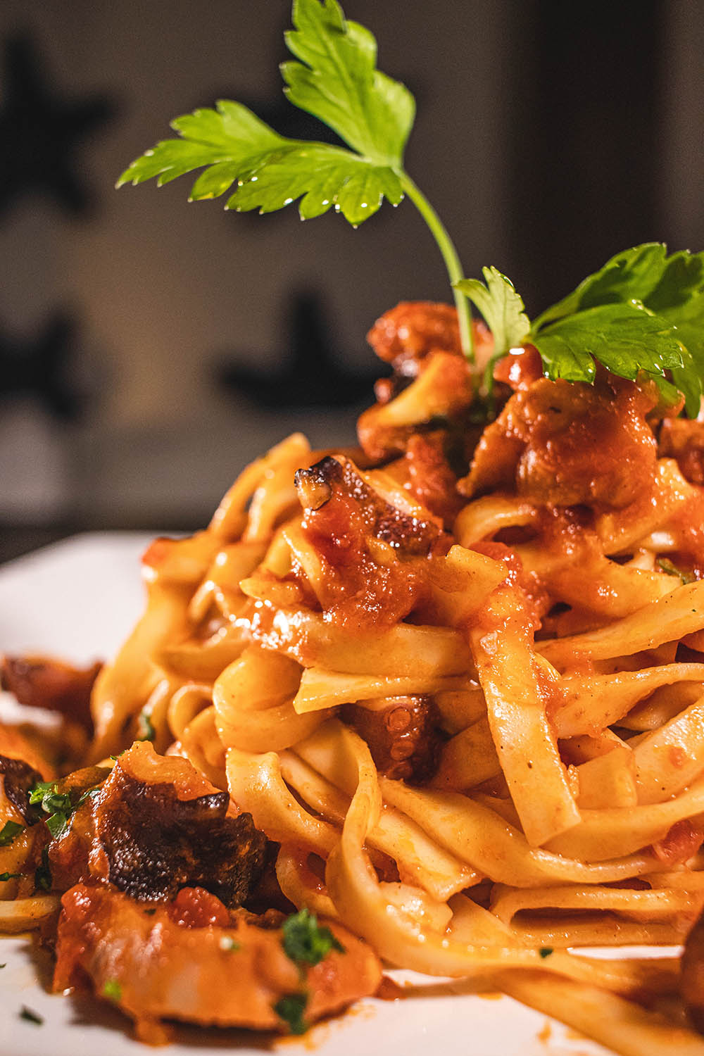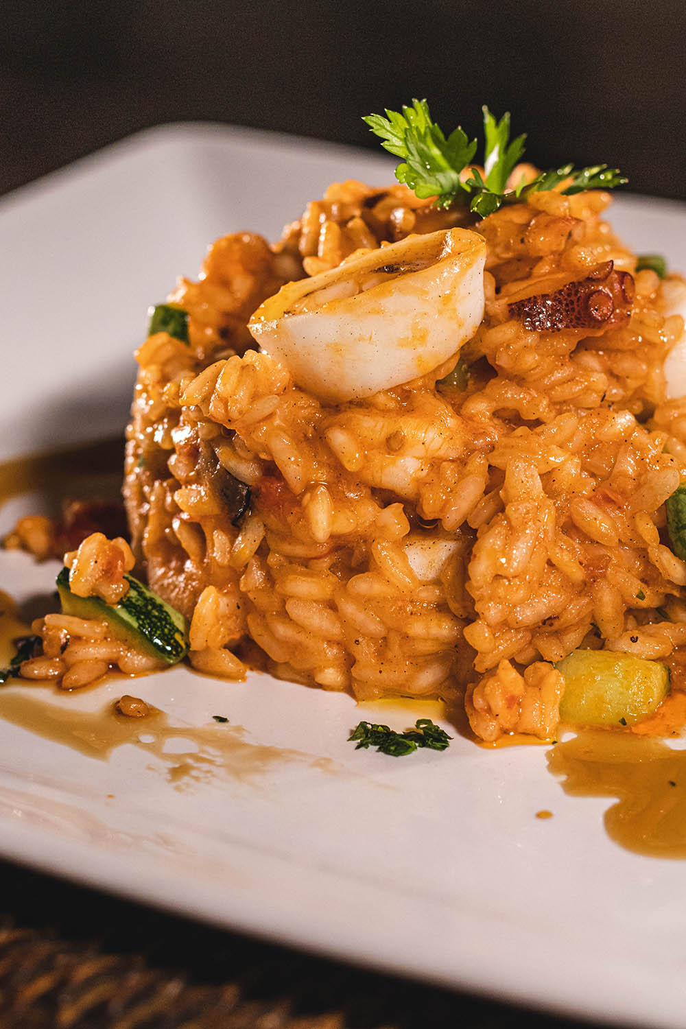 Os pratos quentes servem uma ou duas pessoas com 12 opções: Arroz de frutos do mar, Arroz de camarão, Arroz de polvo, Arroz de lagosta, Fettuccine de frutos do mar, Fettuccine de camarão, Fettuccine de polvo, Fettuccine de lagosta, Risotto di mare, Filé à parmegiana, Filé franco italiano e Camarão da Horta. As sobremesas ficam por conta de uma Mousse de chocolate e Mousse de maracujá.