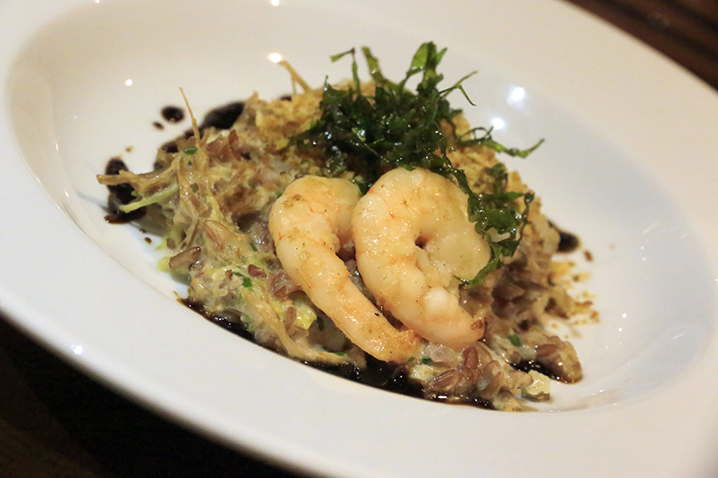 O Baião Très Chic explora, em perfeita harmonia, os sabores da terra e do mar. Ele foi servido com arroz castanho puxado no creme de leite fresco com lascas de carne de sol, tirinhas de acelga, uvas verdes do São Francisco, queijos de coalho, minas padrão e manteiga, coroado com camarões grelhados, farofa Panko e macaxeira chips. Escoltou o prato uma taça de vinho MorandéPionero da leve uva pinotnoir. Foi perfeito!