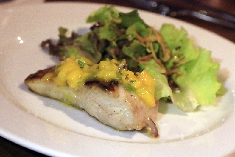 Tropicália foi o nome do primeiro prato principal que Joca Pontes e sua equipe serviram aos jornalistas. Foi um Peixe grelhado sobre tartare de banana, manga e maracujá, arroz castanho, mix de folhas verdes ao vinagrete balsâmico e macaxeira chips. A proposta de harmonização ficou por conta do vinho branco português Meio Queijo, da região do Douro. O toque agridoce do prato fez um contraponto à acidez do vinho, equilibrando o conjunto.