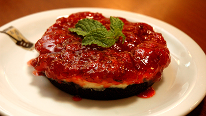| Tortilha de Morango – base de biscoito de maisena e creme de chocolate coberto com geleia de morango |