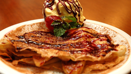 | Crepe de Banana com Canela, na redução de vinho do Porto com sorvete de creme |