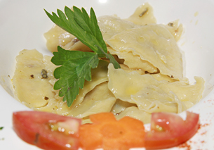 | Tradicional carpaccio está no cardápio | Triângulo de peixe tem massa caseira |
