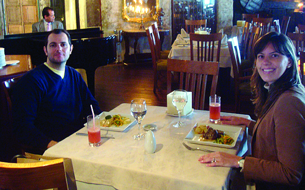 | Ao lado da noiva, Suzana Faria, Chedi janta no restaurante San Isidro, em Bogotá |