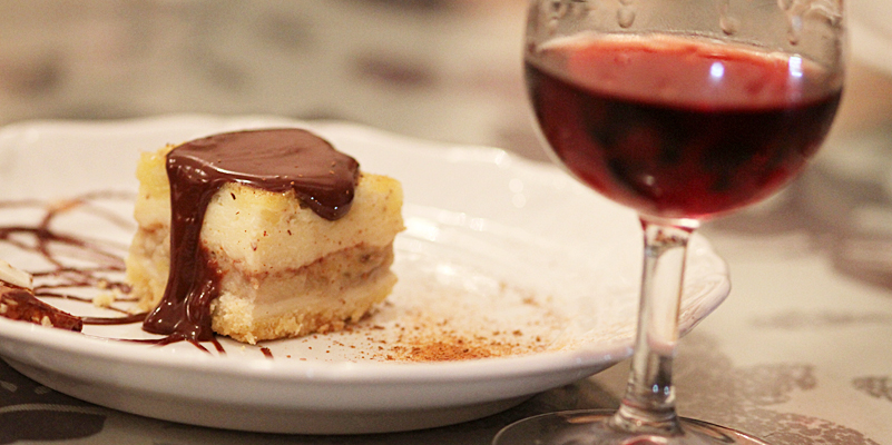 | Torta Cartola com Ganache de Chocolate e o vinho Porto Tawny da Sogrape. |