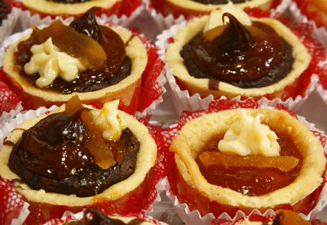 Um pequeno buffet foi montado na Confeitaria expondo as delícias bem próximas aos clientes. Entre as opções estão as Torteletes de ganache com recheio de damasco, mini tortas, mouse, bombons, trufas e o Zucotto, uma espécie de mouse feito à base de chocolate.