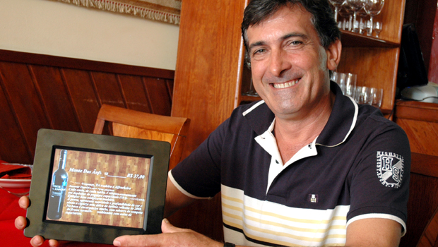 | Domingos Sanches, um dos sócios do Santa Maria, idealizou o cardápio interativo que contempla, no momento, os 50 rótulos de vinhos oferecidos pela casa |