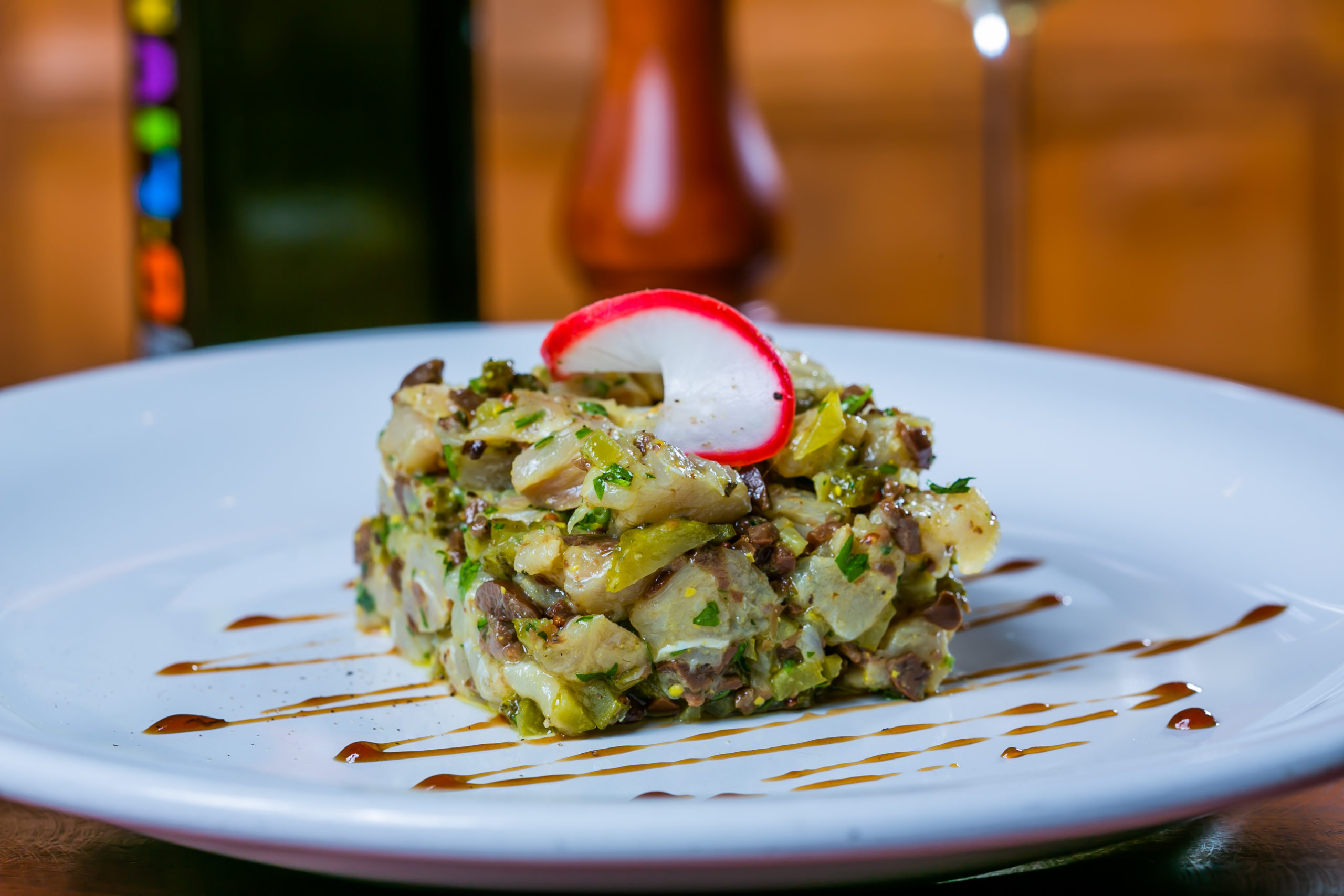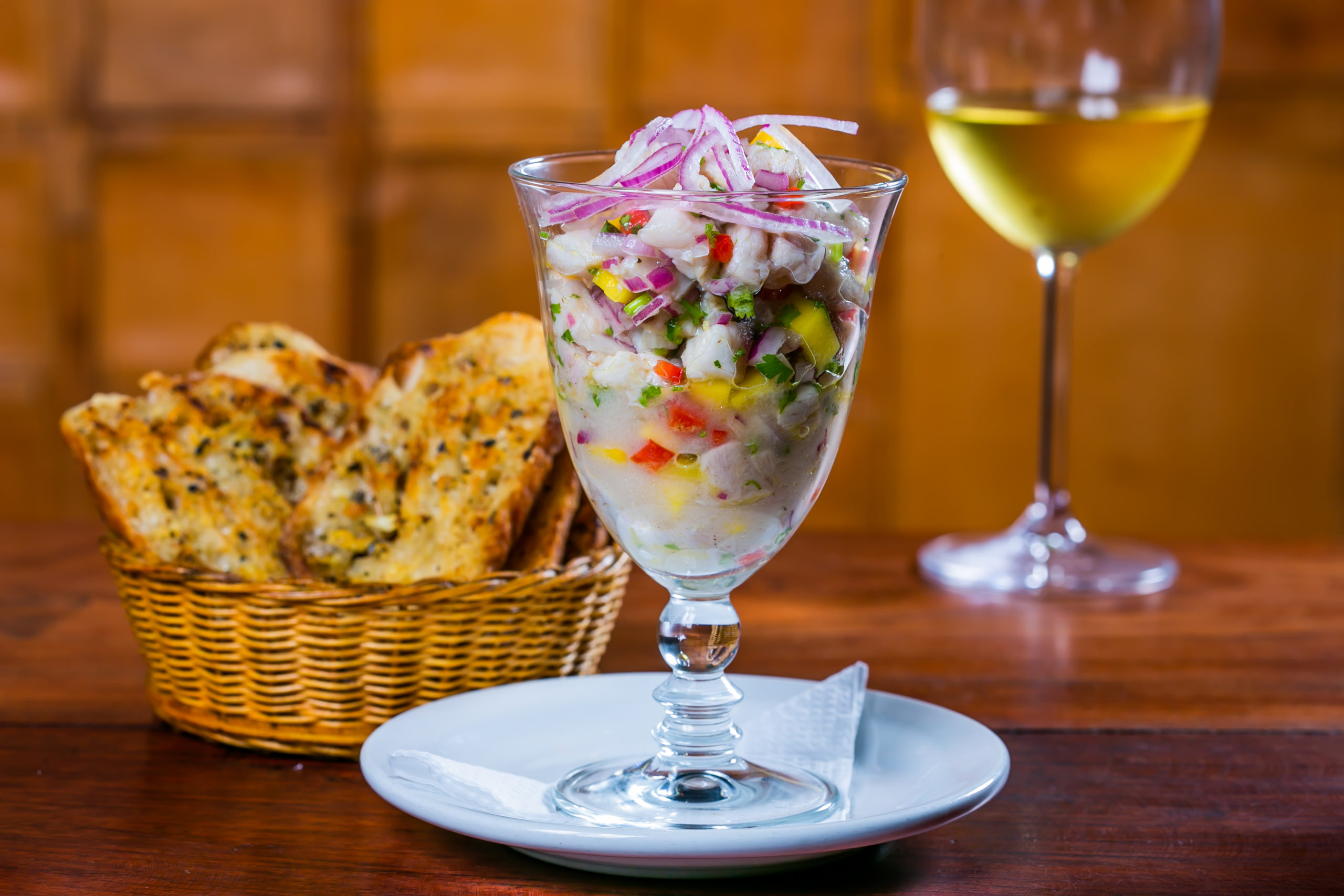As entradas reservam um caprichado Ceviche de peixe e camarão mais os temperos clássicos (coentro, cebola roxa, gengibre, pimenta do reino, sumo de limão e azeite de oliva) a R$ 32,00. Por R$ 55,00, a segunda opção é um Polvo grelhado ao molho de aji picante sobre colchão de abacate e batatas.