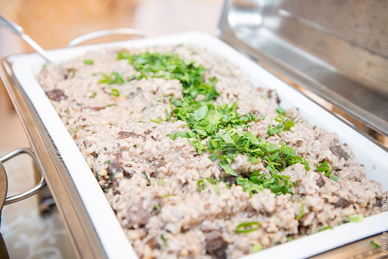 Jerimum com molho de caju, Filé de sol com Cebola roxa caramelizada, Arroz de siri, Camarão na Moranga, Farofa D’água com castanha, Pirão de queijo, Camarão na nata, Feijão verde e Doces em compota variados são os pratos que integram o cardápio.