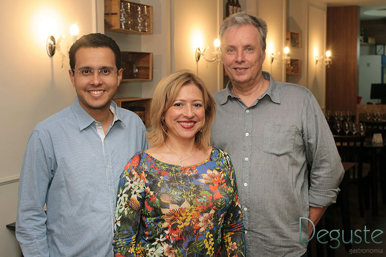 | Valda e Norbert Lahn (centro e direita), que estão na Alemanha, e Marcelo Cruz são sócios do Fritz Bistrô |