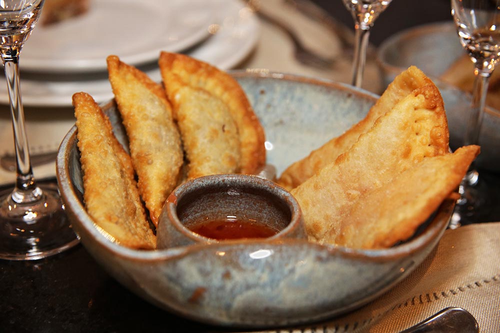 O rótulo Chandon Riche foi a pedida para iniciar o jantar, servido em um drink de boas-vindas chamado Chandon – Riche Fresh. Na sequência, o espumante Chandon Brut Rosé acompanhou pastéis de carne e camarão e torradinhas com manteigas saborizadas.