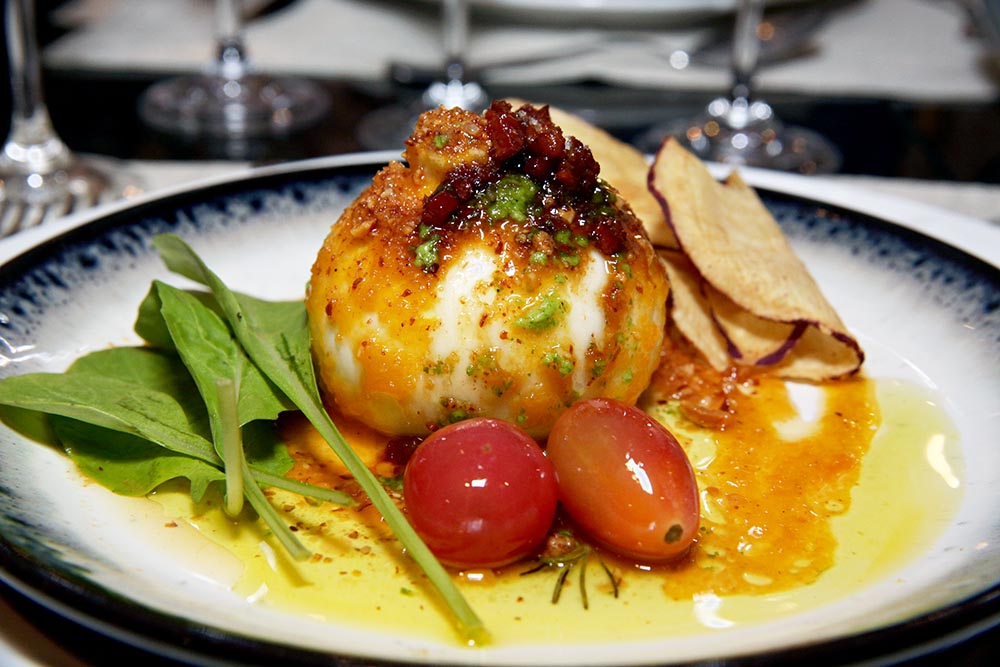 Leonardo ainda apresentou a versão mini da burrata do Thomé (acompanhada de farofa de amêndoas defumadas, crocante de bacon caramelizado, redução de cajá e chips), que ficará como uma opção de entrada individual no cardápio.