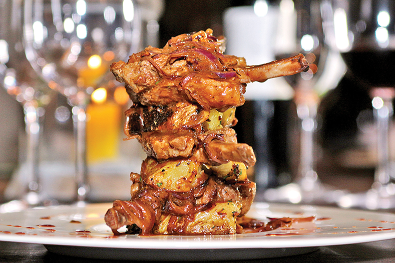 | Carré de cordeiro caramelizado com batata rústica picante |