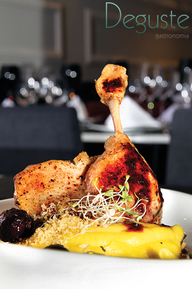 | Confit de Cannard e, ao lado, um detalhe do novo ambiente do Dois Vinho & Cozinha | |