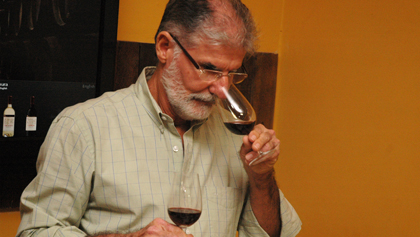 Marcelo Chianca concentrado para avaliar os vinhos