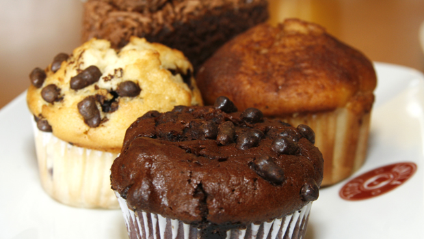 | Muffins de chocolate, baunilha com gotas de chocolate e muffins de banana |