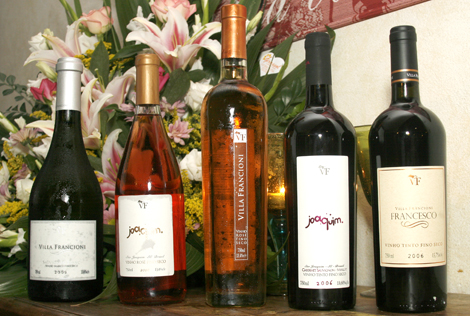 | Os cinco rótulos da Villa Francioni apresentados no jantar |