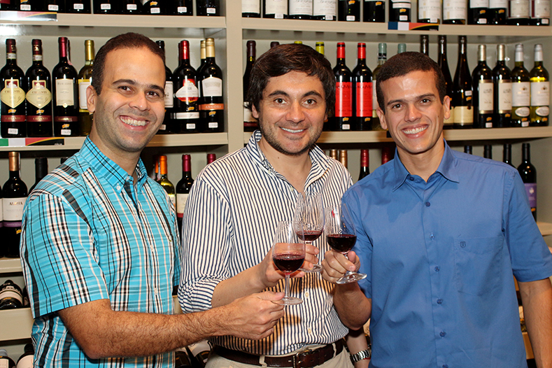 | Roger e Rilder Chaves, sócios da Vinhedos, recepcionaram o diretor de exportação da vinícola De Martino, Cristian Castro |