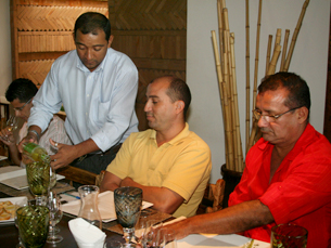 | Ricardo Barbosa e Rilder Chaves, da Vinhedos, ao lado do sommelier José Barros |