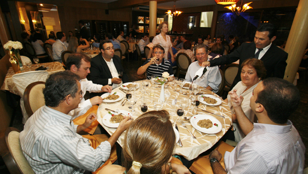 | O cardápio foi especialmente preparado para o evento que teve como pratos principais o Risoto Trufado de Filé e Funghi e o Camarão à Guinza |