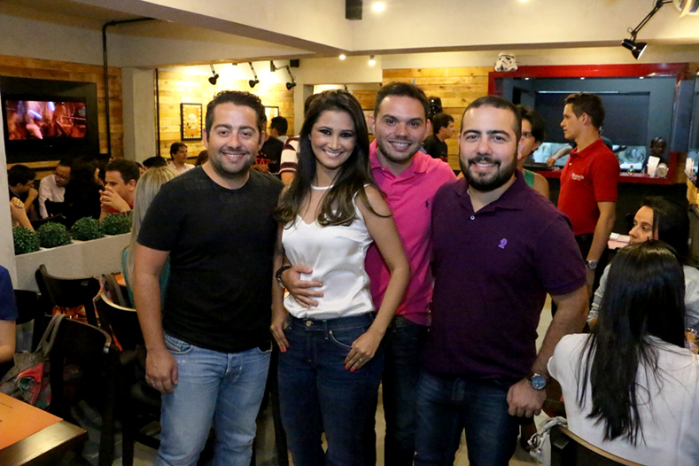 O casal Camilla Bezerra e Bernardo Morais, franqueados da loja, e os proprietários do Wayne's, Frederico Lima e Jozimar Jr.